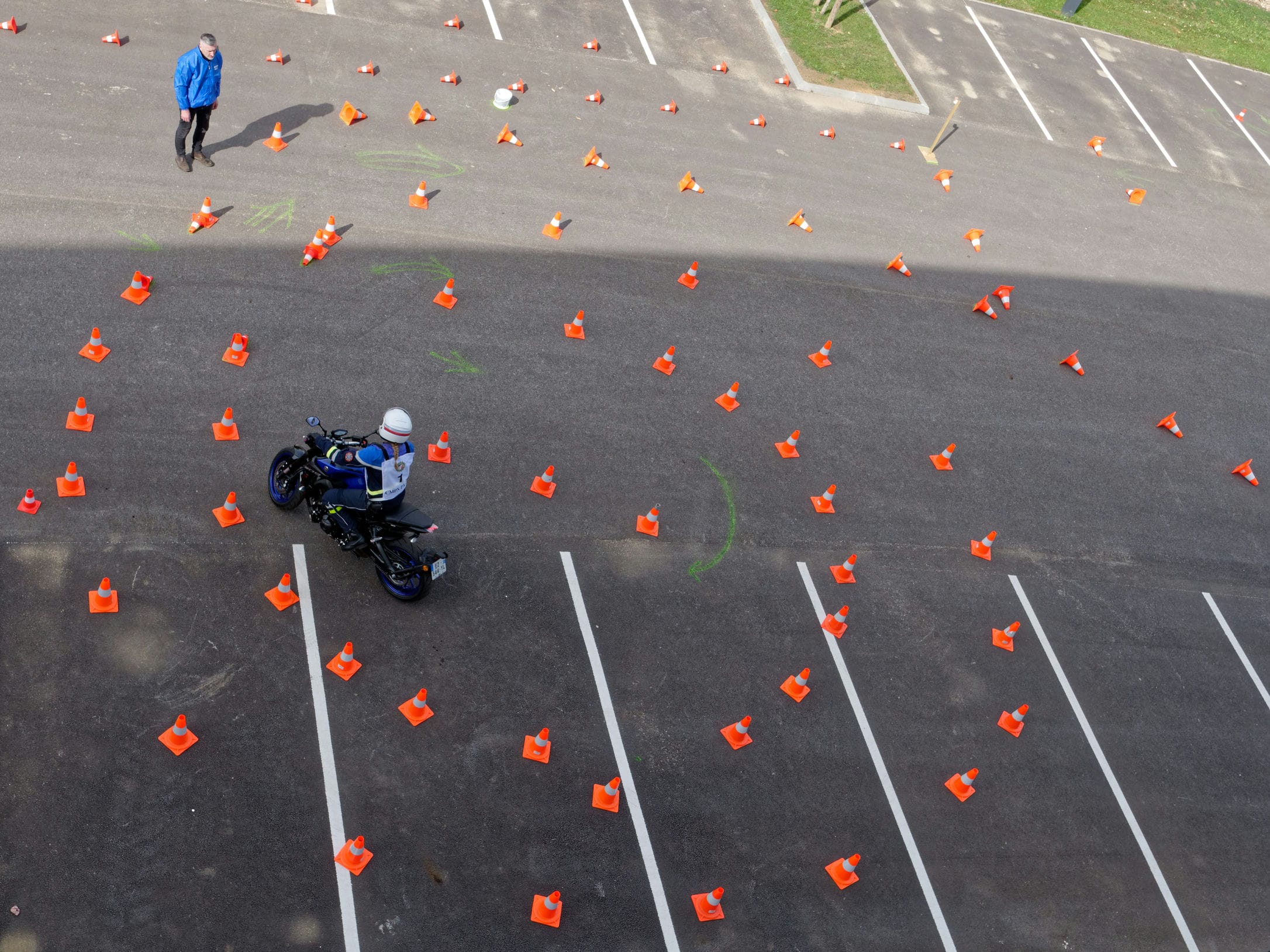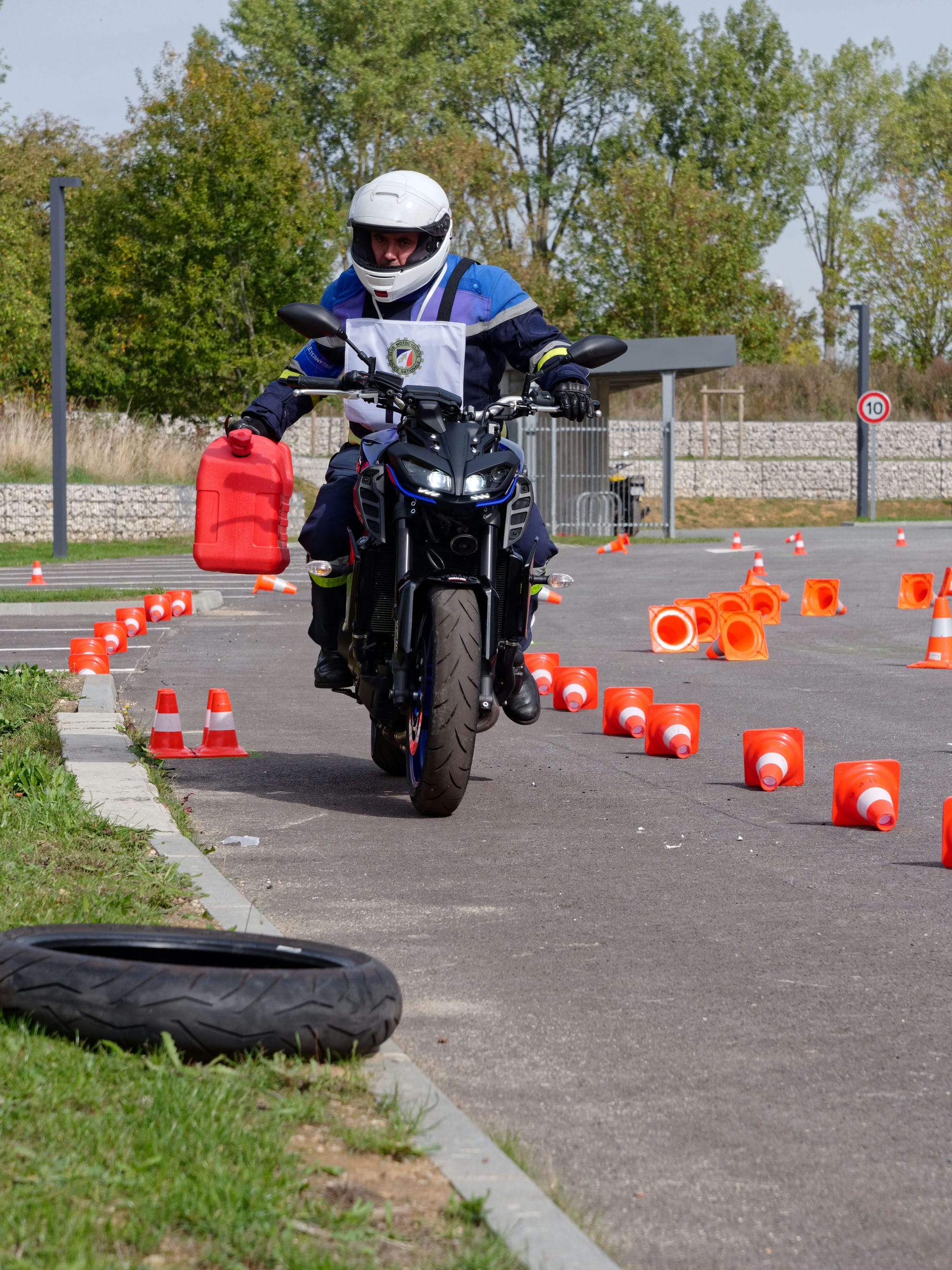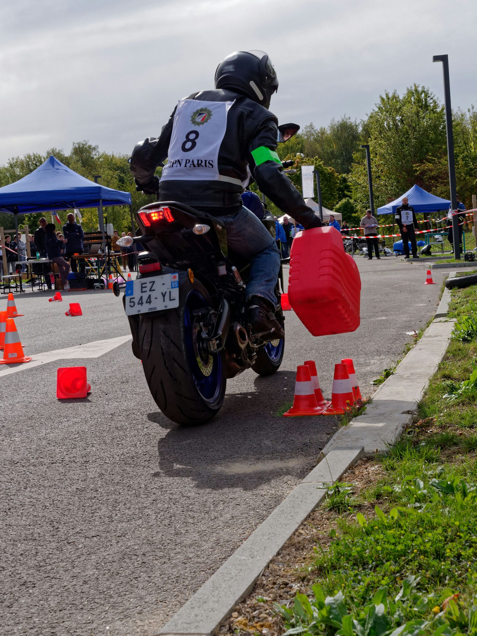 de portes et ateliers de maniabilité pour démontrer leur habileté lors d'un gymkhana. Faire une escorte en milieu urbain dense comme l'Ile de France demande de grandes capacités techniques...